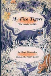 I had expected to kick off this review of My Five Tigers with a story about my own childhood cat: a plump, patient tabby named Scritchy who let us dress her in babushkas, who often sat upright like a human, and who clearly enunciated the word “ham.” I planned to deploy these and similar anecdotes more out of sarcasm than nostalgia, prepared as I was to cringe my way through Lloyd Alexander’s second book. How, in 1956, could a publisher commission an unknown author to write a 118-page account of his five house cats for adult readers? With a dismissive review half-composed in my head, I opened the book and braced for a great wave of treacle.