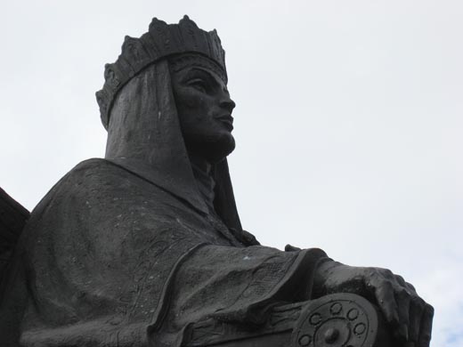 In Bound Brook, sculptor Petro Kapschutschenko has made a remarkable monument to the Kievan Rus regent. Olga is elevated, as an enthroned Byzantine empress would have been, reminding visitors of her superiority and making it impossible for anyone to look her in the eye. Viewed straight on, Olga seems remote but amused, as if she just condemned the director of a TaTu video—but in profile, her face is a mixture of dignity and visible cruelty.