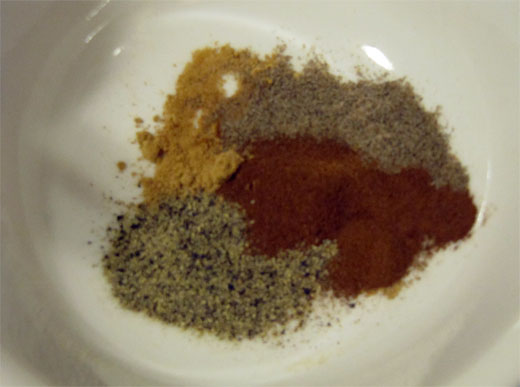 Fresh out of spikenard, and stunned by the recipe’s endorsement of a freeform jazz odyssey of spices, I opted for four I knew I had in my cabinet: 1/4 teaspoon each of pepper, ginger, cardamom, and cinnamon. (I’m not positive that “pepper” in a medieval Middle Eastern recipe meant “ground black peppercorn,” but so be it.)