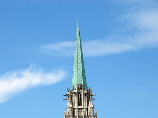 Built in 1919 by and for the Polish Catholics of Perth Amboy, St. Stephen’s Church is a fine example of American neo-Gothic, but despite its intricacy, it’s bereft of grotesques—except for the huge faux-gargoyles below the spire.