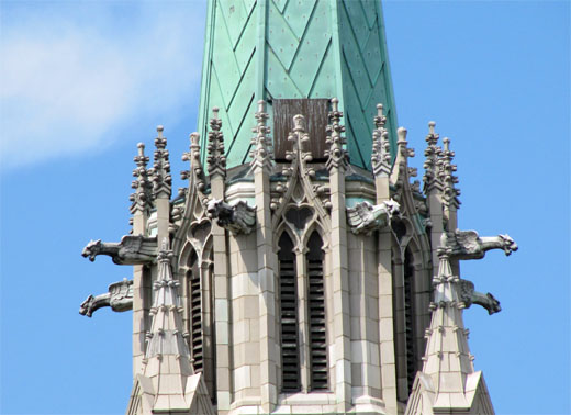 So whose idea were the gargoyles of St. Stephen’s? A 1906 Architectural Record article shows similarly slender beasties made by the Perth Amboy Terra Cotta Company on the first City College of New York building, a neo-Gothic landmark by architect George B. Post.