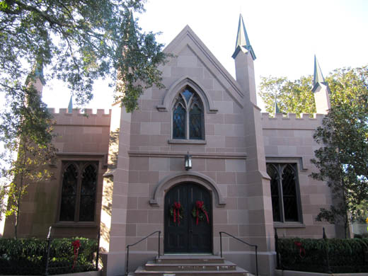 Medievalism is intertwined with the history of the American South. In cities like Richmond and New Orleans, where magazines helped popularize Sir Walter Scott novels and promote chivalric virtues, Gothic revival architecture felt right—but Savannah, where I’m spending Christmas, went its own wonderful way. Here, in a city with countless monuments but surprisingly few statues, you’re more likely to find Georgian, Italian, Federal, and Colonial styles, intermingled but insistently American beneath layers of picturesque moss.