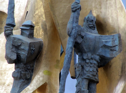 On the right is Boleslaw the Brave, the first crowned king of Poland, born in the year 967. Alongside him is Zawisza the Black, the 15th-century knight who died trying to keep the Ottoman Turks out of the Balkans. Elsewhere, you’ll find King Wladyslaw III, who also died fighting the Turks in 1444, plus a few more recent heroes: Jan Sobieski, Kasimir Pulaski, and Tadeusz Kosciuszko.