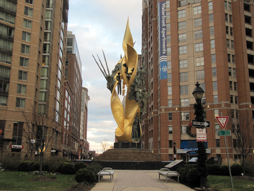 Baltimore is a rewarding place to hunt for traces of the Middle Ages, from the extensive collection at the Walters Art Museum to the ersatz medievalism of the Bromo-Seltzer Tower —but a few weeks ago, in a redeveloped circle where the Inner Harbor meets Fells Point, I was struck by a column of burning knights.