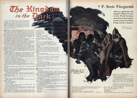 F. Scott Fitzgerald’s third story about medieval France “shows that national chaos does not fail to bring forth a leader.” That’s the chirpy editorial comment just below the byline in the August 1935 issue of Redbook, and it makes me wonder if the magazine’s staffers actually read the story. By this point, they’re no longer touting Fitzgerald’s contributions on the covers, so readers would have had to stumble upon “The Kingdom in the Dark” while flipping through an issue already packed with other, lighter fiction. I wonder how many of them even remembered