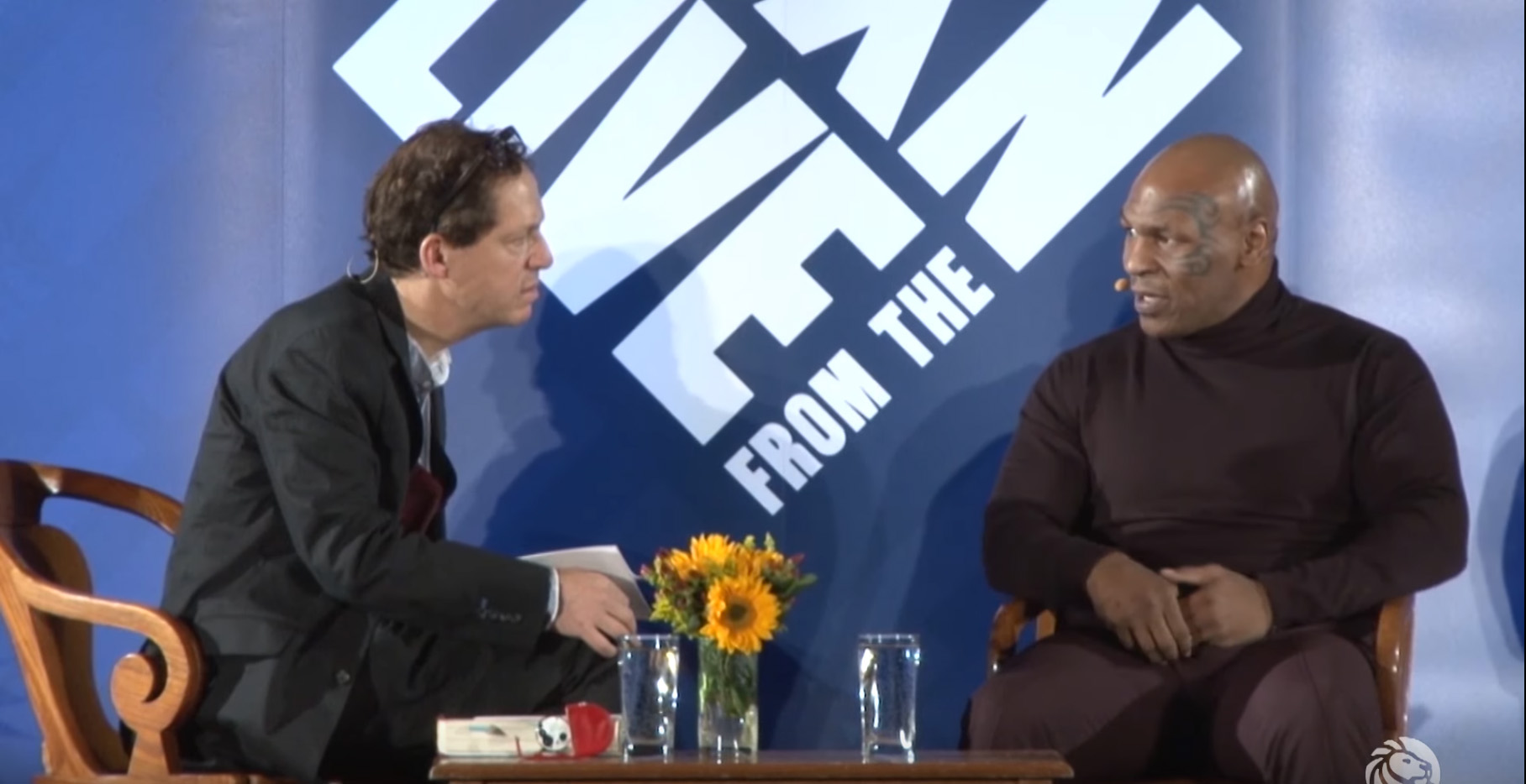 The two men do, in fact, find much to talk about. Their discussion is mesmerizing, because to most of us Mike Tyson is nothing but a face and fists, not a man who reflects aloud and at length about his inner life. Holdengräber prompts a reticent Tyson to narrate clips of his greatest moments in the ring, and newcomers to boxing will easily see why Tyson was such a sensation, but Iron Mike grows more animated when other matters arise.